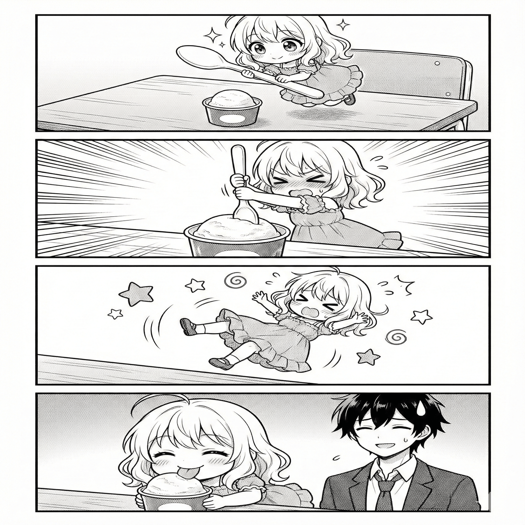 人用のスプーンでも器用に扱うが、なぜか食べるのが下手くそ。